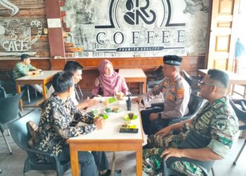 Lhokseumawe - Kepolisian Resor Lhokseumawe Sektor Dewantara bersama Koramil setempat gelar ngopi bareng yang berlangsung di Mapolsek Dewantara, senin ...