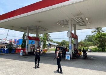 LHOKSEUMAWE - Patroli cegah gangguan Kamtibmas, Tim Unit Reaksi Cepat (URC) Sat Samapta Polres Lhokseumawe menyasar Stasiun Pengisian Bahan ...