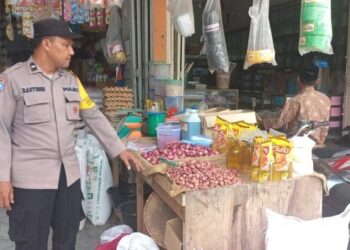LHOKSEUMAWE - Monitoring stok sembako pasca lebaran, Personel Polsek Samudera, Polres Lhokseumawe blusukan ke sejumlah pedagang di pasar tradisional dan ...