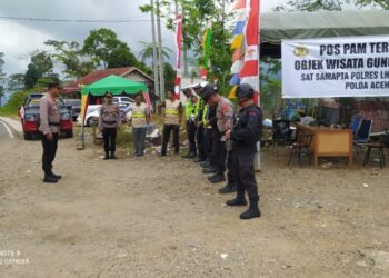 LHOKSEUMAWE - Personel Pam wisata Gunung Salak, Aceh Utara, wilayah hukum Polres Lhokseumawe melaksanakan apel dan patroli rutin di sepanjang ...