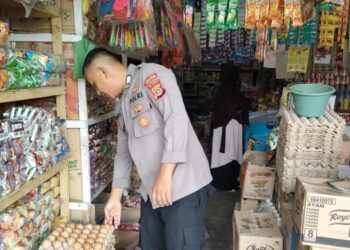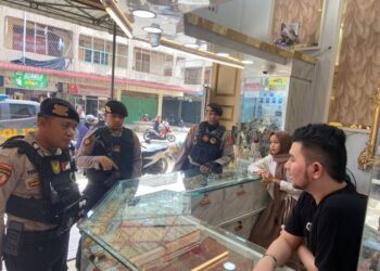 LHOKSEUMAWE - Personel Polsek Kuta Makmur turun ke pasar Keude Krueng, Kuta Makmur, Aceh Utara, wilayah hukum Polres Lhokseumawe, ...