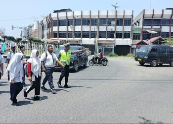 LHOKSEUMAWE - Polisi lalu lintas (Polantas) Lhokseumawe rutin melaksanakan strong poin pada jam pulang sekolah di wilayah Kota Lhokseumawe, kegiatan ...