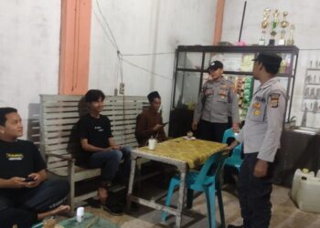 LHOKSEUMAWE - Personel Polsek Nisam melaksanakan patroli dialogis malam hari ke gampong-gampong dan memantau aktivitas masyarakat di Kecamatan Nisam, ...