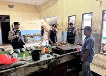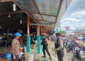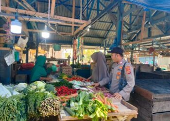 LHOKSEUMAWE - Pastikan stok sembako stabil jelang bulan suci Ramadhan, personel Polsek Dewantara, Polres Lhokseumawe blusukan ke pasar Keude ...
