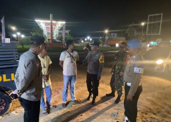 LHOKSEUMAWE - Personel Polsek Nisam melaksanakan patroli dialogis malam hari ke gampong-gampong dan memantau aktivitas masyarakat di Kecamatan Nisam, ...