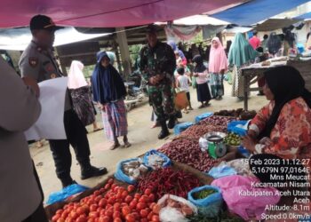LHOKSEUMAWE - Kapolsek Nisam, Iptu Azharuddin bersama unsur Muspika temui sejumlah pedagang di pasar tradisional di wilayah tersebut, kegiatan ...