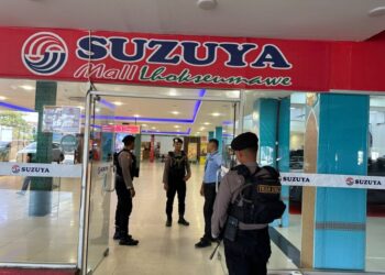 LHOKSEUMAWE - Tim Unit Reaksi Cepat (URC) Sat Samapta Polres Lhokseumawe melaksanakan patroli di pusat perbelanjaan di Kota Lhokseumawe ...