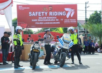 Lhokseumawe- Polres Lhokseumawe Safety Riding dalam rangka Hari Bhayangkara ke-77 yang berlangsung di Mapolres Lhokseumawe, senin (26/06/2023) pagi. Hadir menyaksikan ...