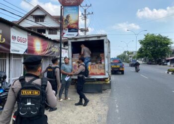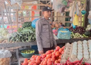 LHOKSEUMAWE - Personel Polsek Simpang Keuramat secara rutin turun ke pasar tradisional maupun toko kelontong di Keude Simpang Empat, Kecamatan ...