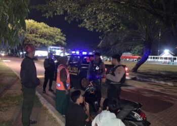 LHOKSEUMAWE - SAR Samapta Polres Lhokseumawe mengerahkan enam personel Tim Unit Reaksi Cepat (URC) dalam patroli cegah gangguan Kamtibmas dan ...
