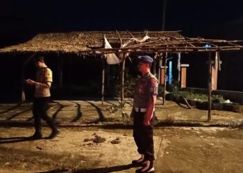 LHOKSEUMAWE - Personel Polsek Kuta Makmur melaksanakan patroli rutin cegah gangguan Kamtibmas di kawasan Gampong Blang Ara dan Blang ...