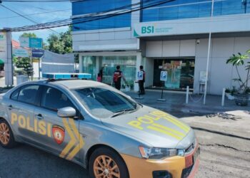 LHOKSEUMAWE - Personel Polsek Blang Mangat melakukan pengamanan kegiatan penyaluran Bantuan Sosial Tunai (BST) Tahun 2023 di kantor kecamatan Blang ...