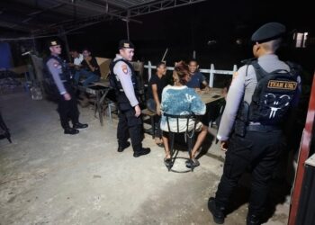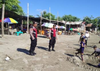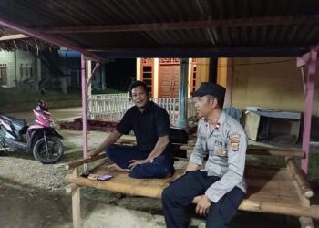 LHOKSEUMAWE- Personel Polsek Blang Mangat menyambangi warga Keude Punteut, Kecamatan Blang Mangat, Kota Lhokseumawe saat melaksanakan patroli rutin, Minggu ...