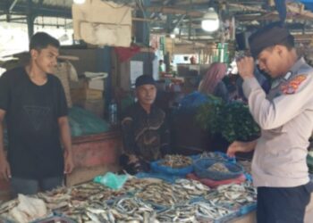 LHOKSEUMAWE - Personel Polsek Meurah Mulia, Polres Lhokseumawe blusukan ke pasar Jungka Gajah, Meurah Mulia, Aceh Utara, Jumat (26/5/2023), ...