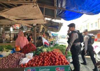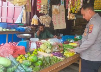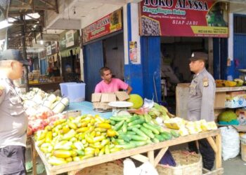 LHOKSEUMAWE - Personel Polsek Syamtalira Bayu menyambangi pedagang sayuran di Keude Bayu, Syamtalira Bayu, Aceh Utara, wilayah hukum Polres ...