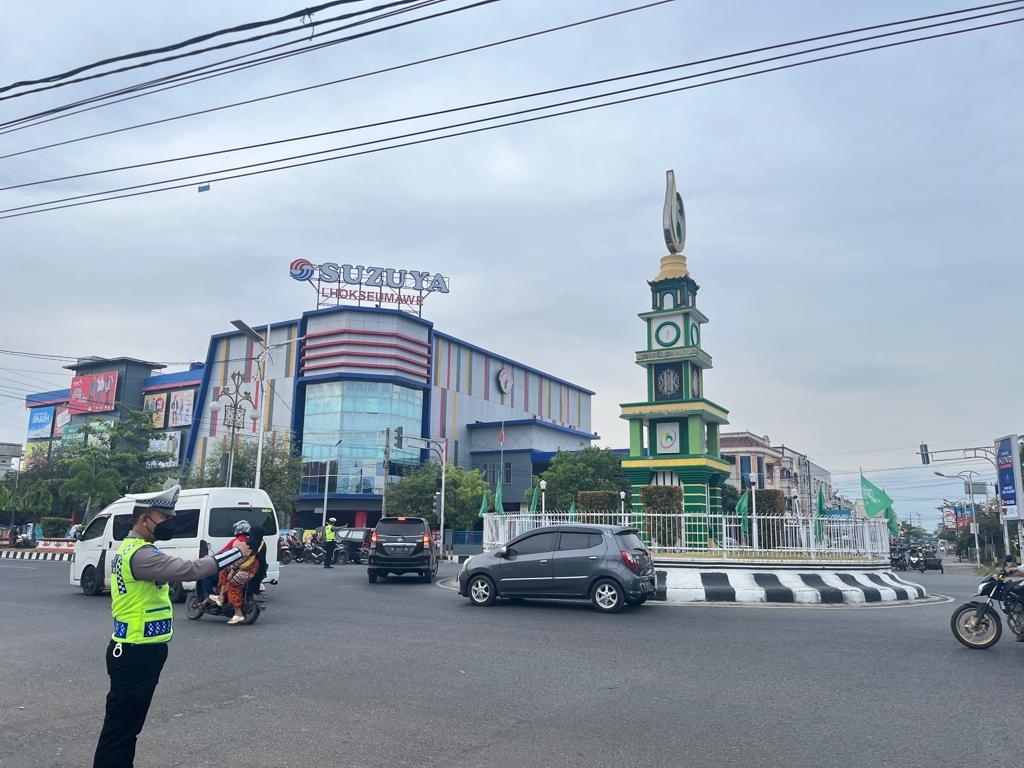 LHOKSEUMAWE - Polantas Lhokseumawe melaksanakan strong poin rutin di sejumlah titik penggal atau persimpangan di wilayah Kota Lhokseumawe, Selasa ...
