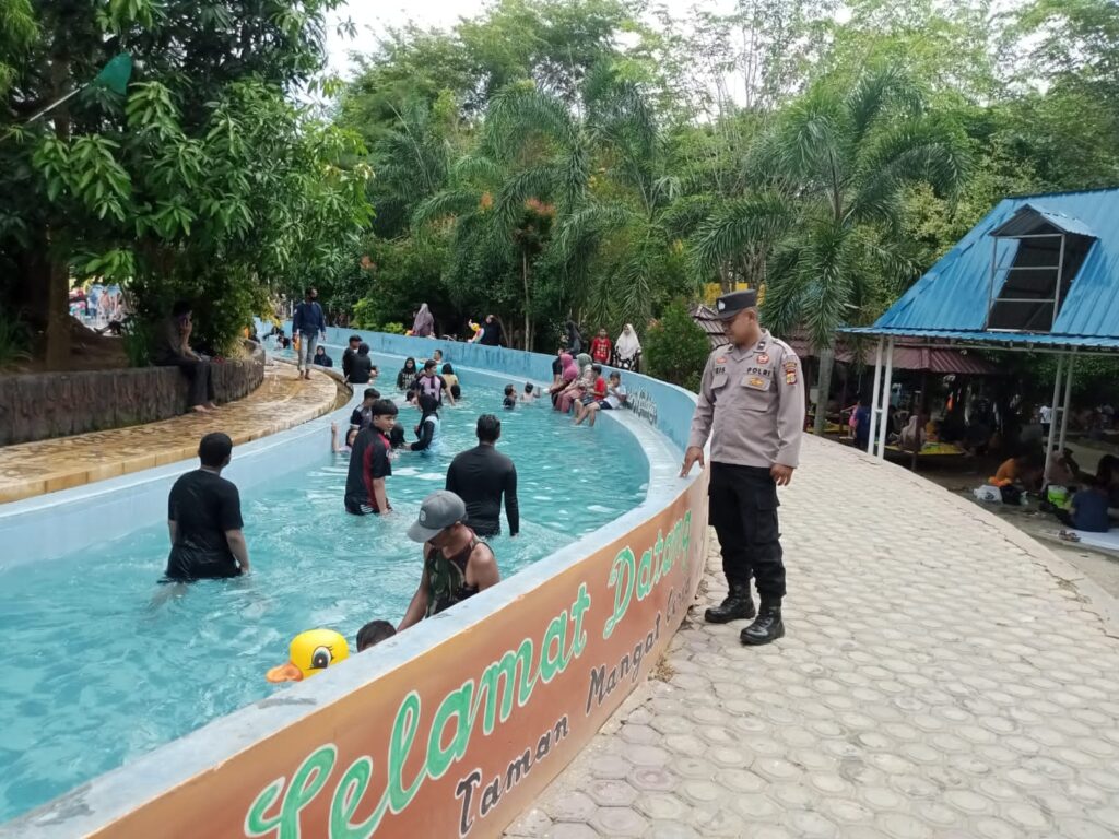LHOKSEUMAWE - Patroli di obyek wisata Water Boom Mangat Ceria, Kecamatan Blang Mangat, Kota Lhokseumawe, personel Polsek Blang Mangat meminta ...