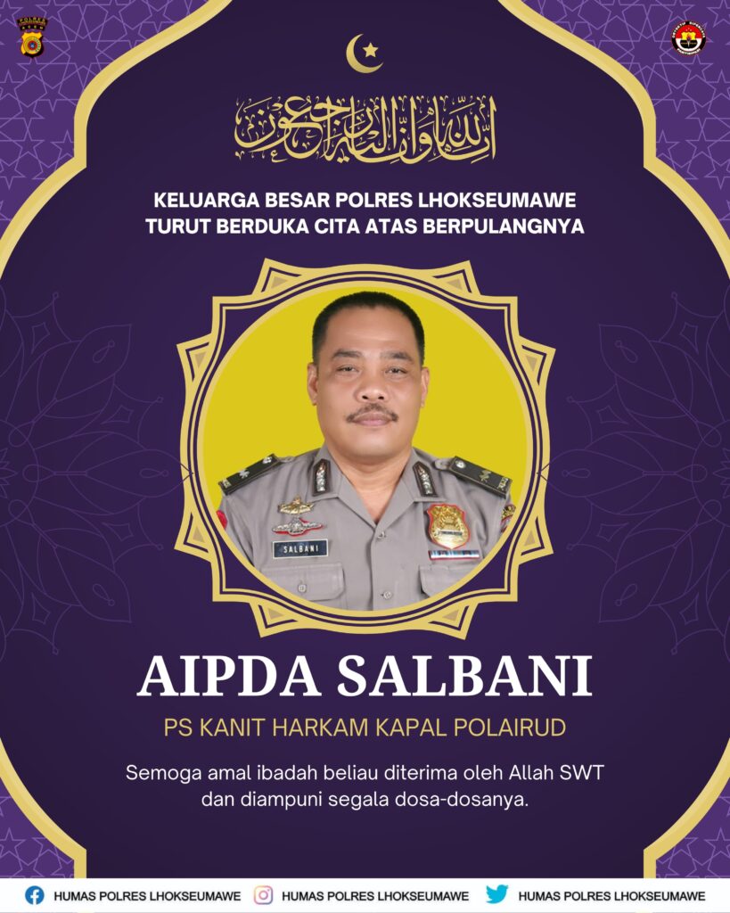 Lhokseumawe – Suasana duka menyelimuti jajaran Polres Lhokseumawe atas wafatnya salah satu personel terbaiknya, Aipda Salbani, yang menjabat sebagai PS ...