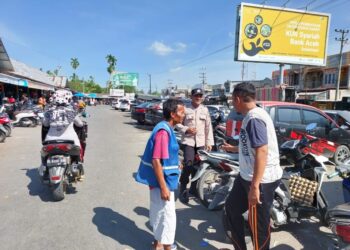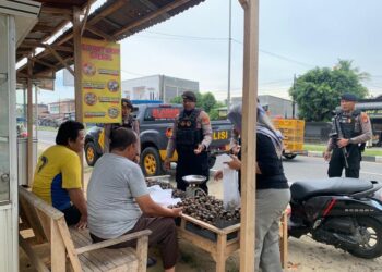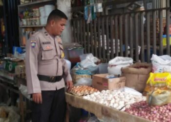 LHOKSEUMAWE - Personel Polsek Muara Satu melaksanakan patroli rutin di pasar Batuphat, Kecamatan Muara Satu, Kota Lhokseumawe, Sabtu (29/7/2023), kegiatan ...