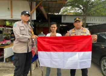 LHOKSEUMAWE - Kapolsek Muara Dua, Ipda Roni, SH bersama personel membagikan bendera merah putih kepada masyarakat, kegiatan tersebut dilaksanakan di ...