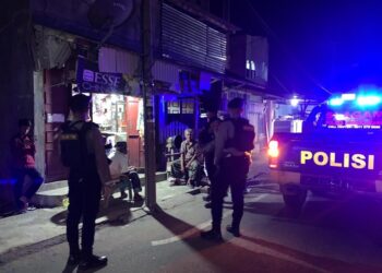 LHOKSEUMAWE - Personel Polsek Blang Mangat melaksanakan patroli rutin di pertokoan di kawsan Keude Punteut, Kecamatan Blang Mangat, Kota ...