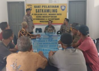 LHOKSEUMAWE - Personel Polsek Muara Batu memberikan pelatihan kepada anggota Satkamling, kegiatan tersebut berlangsung di kantor Keuchik Gamping Pante Gurah, ...