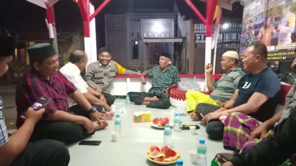 LHOKSEUMAWE - Kapolsek Banda Sakti, Ipda Arizal, SH bersilaturahmi dengan masyarakat di Pos Kamling Desa Pusong Lama, Kecamatan Banda ...