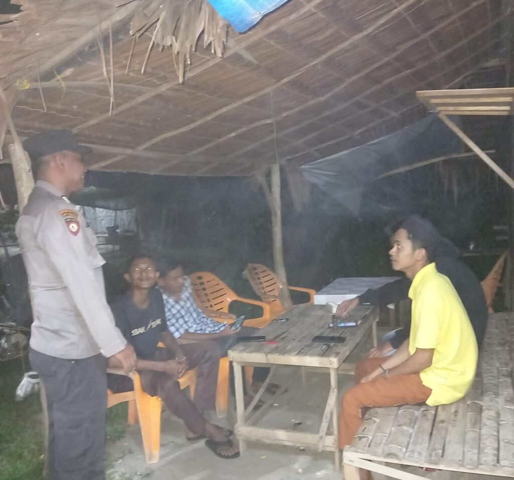 LHOKSEUMAWE - Patroli dialogis, personel Polsek Meurah Mulia menemui warga di malam hari di tempat publik di seputaran Kecamatan Meurah ...