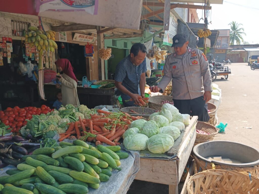 LHOKSEUMAWE - Personel Polsek Meurah Mulia menyambagi pedagang di pasar Keude Jungka Gajah, Meurah Mulia, Aceh Utara, wilayah hukum ...