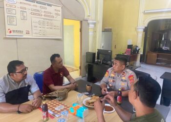 LHOKSEUMAWE - Kapolsek Muara Dua, Ipda Roni, SH bersilaturahmi ke kantor Panitia Pengawas Kecamatan (PPK) Muara Dua di Meunasah ...
