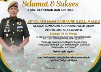 Keluarga Besar RSU. Cut Meutia Aceh Utara Mengucapkan Selamat dan Sukses Atas Pelantikan dan Sertijab Letkol ARH Jamal Dani S.Sos ., M.M.D.S Sebagai Dandim 0103/Aceh Utra 3 Juli 2025
