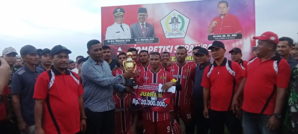 ACEH UTARA - Ketua DPRK Aceh Utara, Arafat Ali secara resmi menutup turnamen sepak bola antar kecamatan di.laoanagan bola kaki ...
