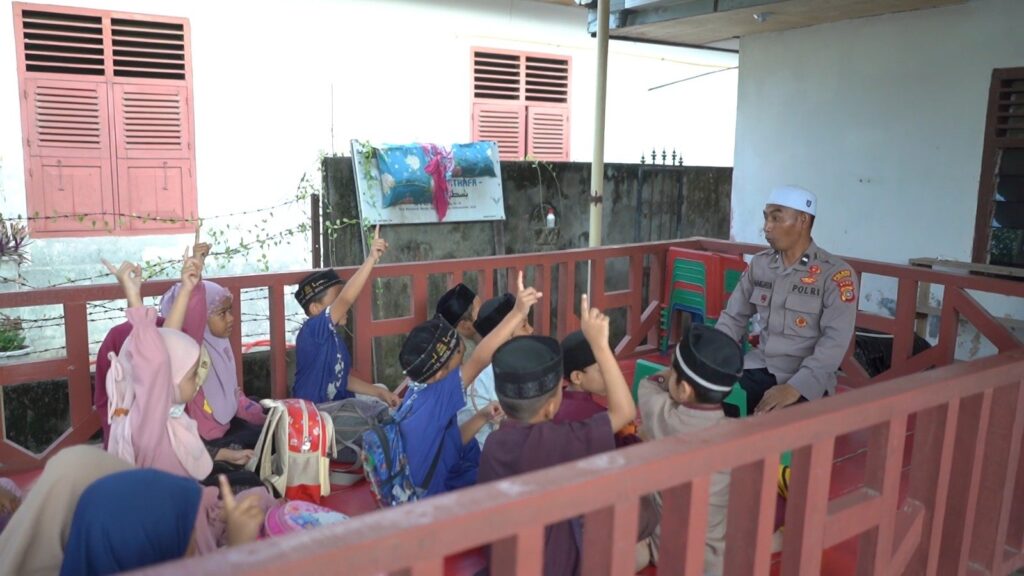 ACEH UTARA – Tak hanya menjaga keamanan dan ketertiban, seorang Bhabinkamtibmas Polsek Meurah mulia, Polres Lhokseumawe aktif menjadi guru mengaji bagi anak-anak di wilayah tugasnya. Tak hanya melafalkan al-quran, Aipda Hamjaya juga mengajarkan cara penulisannya.