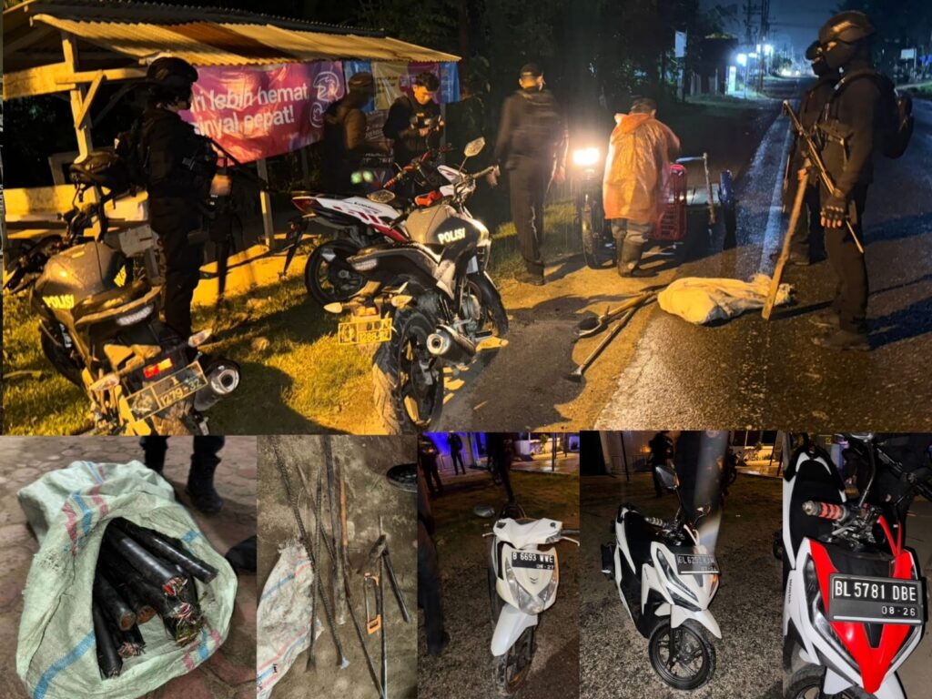 Barang bukti yang diamankan antara lain tiga unit sepeda motor, satu unit cangkul, satu unit gergaji besi, empat unit linggis, dua unit tembilang, serta satu unit kabel milik PT PLN. Seluruh barang bukti telah diserahkan ke Polsek Muara Dua untuk proses penyelidikan lebih lanjut.