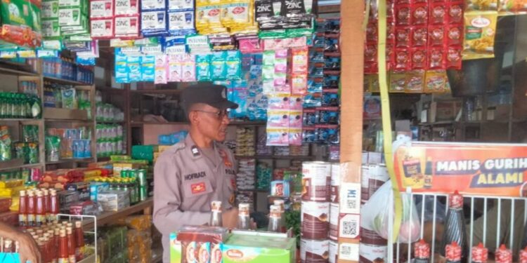 LHOKSEUMAWE – Personel Polsek Muara Dua menemui pedagang kelontong di pasar Keude Cunda, Muara Dua, Kota Lhokseumawe, Senin (19/2/2024).