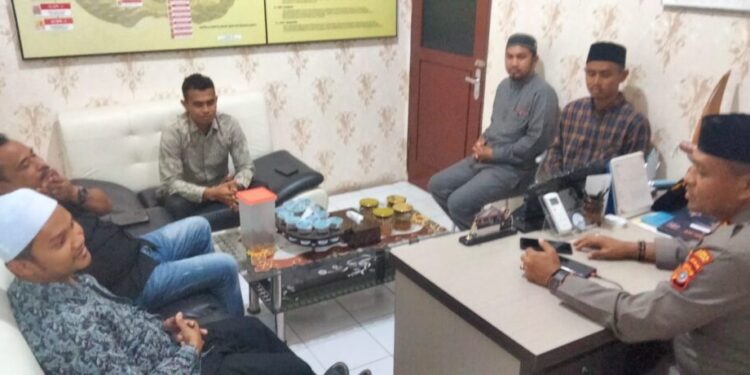 LHOKSEUMAWE – Kapolsek Banda Sakti, Iptu Faisal, SH menerima kunjungan pimpinan Dayah Tahfidzul Qur’an Imain Syafi’, Ustadz Abdul Halim di Mapolsek Banda Sakti, Senin (6/3/2023), dalam kunjungan ini keduanya membahas tentang kenakalan remaja.