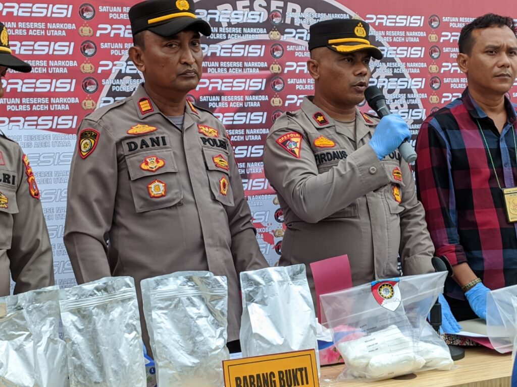 Kapolres Aceh Utara AKBP Deden Heksaputera S, S.I.K melalui Kabag Ops Kompol Firdaus didampingi Kasat Res Narkoba AKP Novrizaldi menyampaikan pengungkapan kasus Narkoba jaringan antar Provinsi itu dilakukan pada periode 12 hingga 24 Juni 2023.