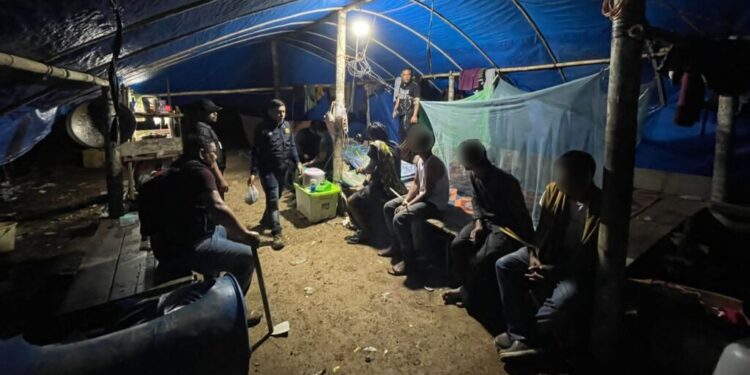 ACEH BARATÂ – Personel gabungan Ditreskrimsus Polda Aceh bersama Satreskrim Polres Aceh Barat mengamankan tiga pelaku tambang ilegal atau illegal mining di Desa Geudong, Kecamatan Sungai Mas, Kabupaten Aceh Barat, Senin (14/8/2023).