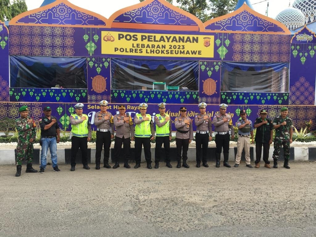 LHOKSEUMAWE β Tim asistensi Ditlantas Polda Aceh mengunjungi Pos Pelayanan Operasi Ketupat Seulawah 2023 Banda Sakti, Kota Lhokseumawe, Kamis (27/4/2023).