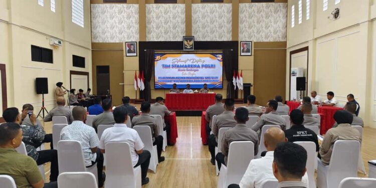 LHOKSEUMAWE – Polres Lhokseumawe menerima kunjungan Tim Stamarena Polri dalam rangka pelaksanaan asesmen terhadap satuan kerja/satuan wilayah yang telah berpredikat Wilayah Bebas dari Korupsi (WBK) dan Wilayah Birokrasi Bersih dan Melayani (WBBM). Kegiatan ini dihadiri sejumlah pejabat utama Polres Lhokseumawe dan perwakilan personil dari satuan fungsi yang berlangsung di Gedung Serbaguna Polres Lhokseumawe, Kamis (20/11/2025).