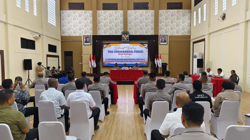 LHOKSEUMAWE – Polres Lhokseumawe menerima kunjungan Tim Stamarena Polri dalam rangka pelaksanaan asesmen terhadap satuan kerja/satuan wilayah yang telah berpredikat Wilayah Bebas dari Korupsi (WBK) dan Wilayah Birokrasi Bersih dan Melayani (WBBM). Kegiatan ini dihadiri sejumlah pejabat utama Polres Lhokseumawe dan perwakilan personil dari satuan fungsi yang berlangsung di Gedung Serbaguna Polres Lhokseumawe, Kamis (20/11/2025).