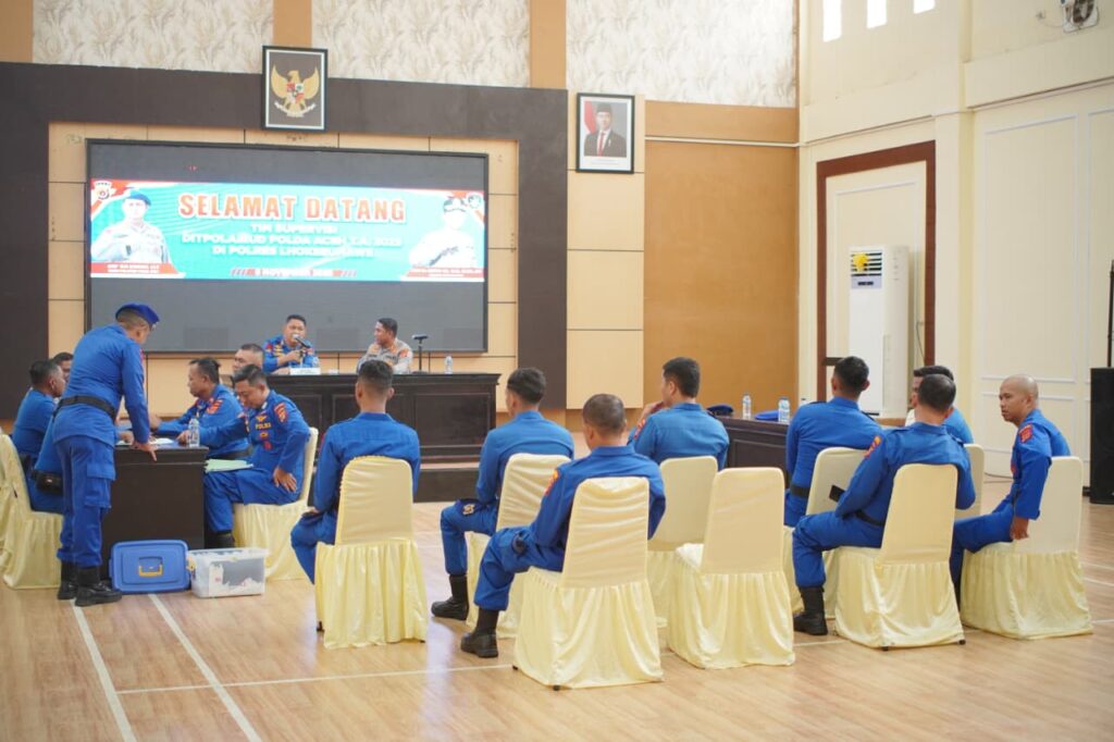 Usai kegiatan pembukaan, tim melaksanakan pemeriksaan berkas administrasi di Aula Mapolres Lhokseumawe, dilanjutkan dengan pengecekan situasi dan kondisi kantor Mako Sat Polairud. Tim juga melakukan pemeriksaan terhadap kapal patroli C2 dan C3 yang bersandar di dermaga Pusong Lama, Kecamatan Banda Sakti, serta dua unit alat penyelamatan U-Saffe.