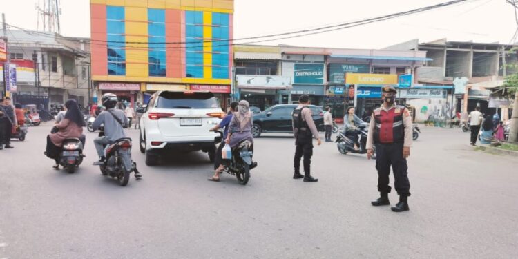 LHOKSEUMAWE – Tim Unit Reaksi Cepat (URC) Sat Samapta Polres Lhokseumawe melaksanakan patroli dan mengatur arus lalu lintas di sejumlah titik di wilayah Kota Lhokseumawe, Jumat (31/3/2023), kegiatan ini untuk mencegah kemacetan jelang waktu berbuka puasa.