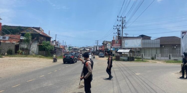 LHOKSEUMAWE – Tim Unit Reaksi Cepat (URC) Sat Samapta Polres Lhokseumawe melaksanakan pengamanan pada rute dilintasi menteri koordinator Pembangunan Manusia dan Kebudayaan (PMK) berserta rombongan di kawasan Muara Batu, Aceh Utara, wilayah hukum Polres Lhokseumawe, Sabtu (4/3/2023).