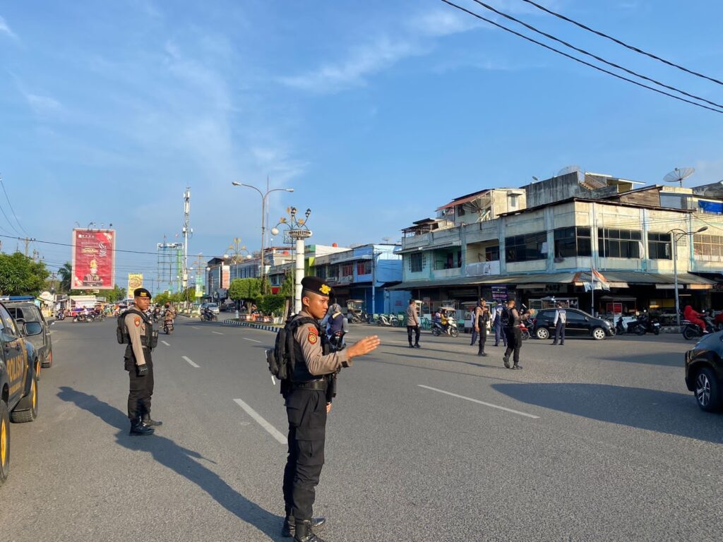 Lanjutnya, personel mengatur arus lalu lintas di titik penggal atau persimpangan, seperti jalan Darussalam, jalan Merdeka, jalan Merdeka Barat dan sejumlah titik rawan macet lainnya.