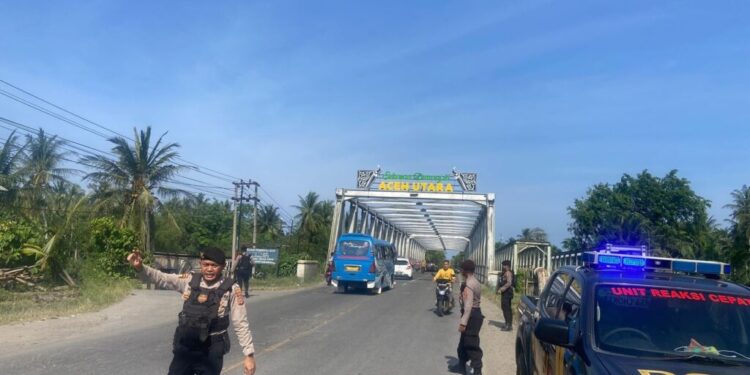 Tim URC Polres Lhokseumawe Lakukan Pengamanan Rute Kunker Menteri PMK