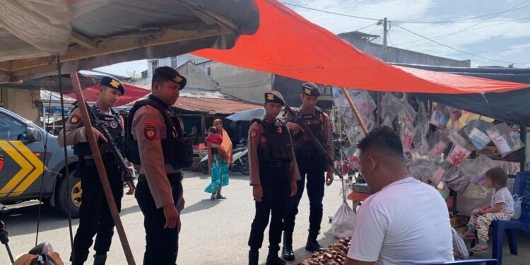 Tim URC Polres Lhokseumawe Patroli Antisipasi Premanisme di Pasar Tradisional Punteut