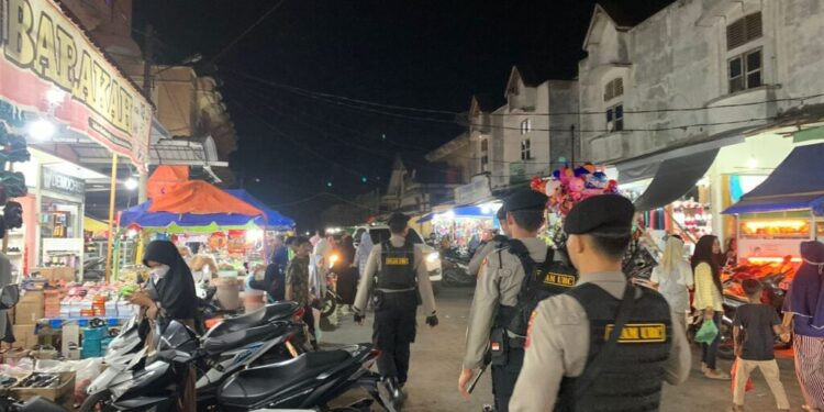 LHOKSEUMAWE – Tim Unit Reaksi Cepat (URC) Sat Samapta Polres Lhokseumawe berpatroli di pusat perbelanjaan di seputaran Kota Lhokseumawe, Selasa (18/4/2023) malam, kegiatan tersebut guna mengantisipasi gangguan Kamtibmas menjelang lebaran Idul Fitri 1444 Hijrah.