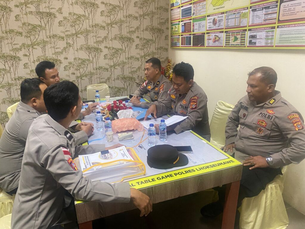 Kegiatan yang berlangsung di ruang Posko Operasi Ketupat Seulawah Polres Lhokseumawe ini dipimpin oleh Kompol Suhardi, S.H., didampingi AKP Arifin Ahmad, S.Sos., serta Briptu Ferdi, S.H. Sementara dari jajaran Polres Lhokseumawe turut hadir Kabag Ops Kompol M. Abdhi Hendriyatna, S.I.K., M.H, Kasubag Binops AKP Zahabi, S.E., M.S.M., serta personel Bagops lainnya.