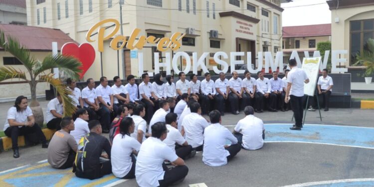 Kegiatan tersebut dipimpin langsung oleh Kasat Reskrim Polres Lhokseumawe, AKP Dr. Bustani, S.H., M.H., M.S.M., yang memberikan materi kepada seluruh personel Sat Reskrim terkait pelaksanaan penyelidikan dan penyidikan sesuai dengan ketentuan peraturan perundang-undangan yang berlaku.
